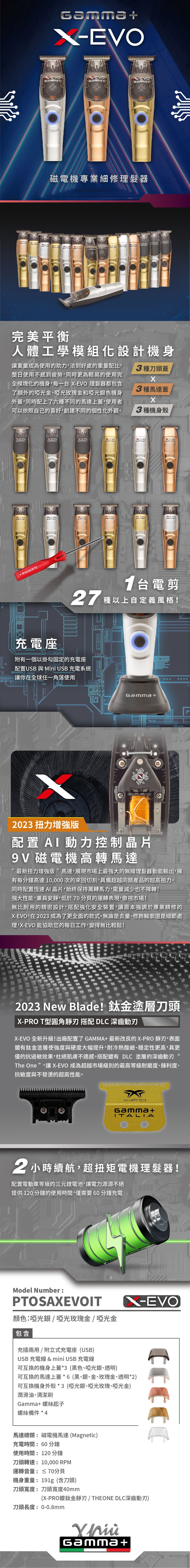 X-EVO 擁有最堅固和最專業的馬達「Magnetic專業電磁馬達」,它為電剪馬達中的冠軍寶座,採用了最新的磁力馬達技術,使用最新微晶片PC電路板和9V馬達,具有更強的動力和扭矩!
